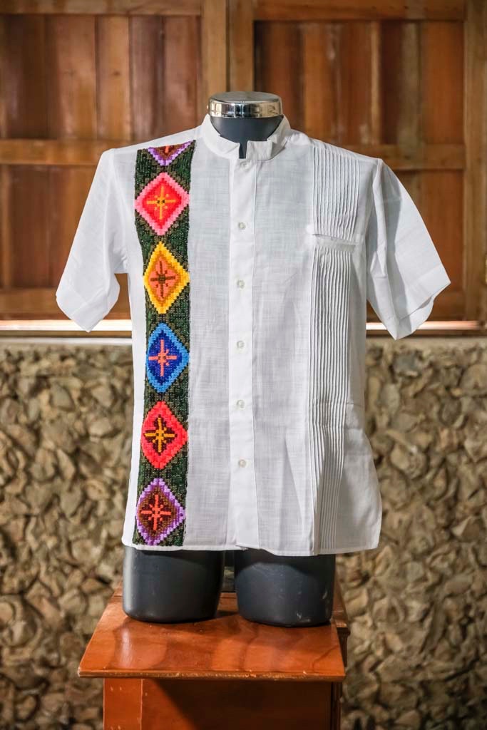 Camisa blanca con diseño de romboides
