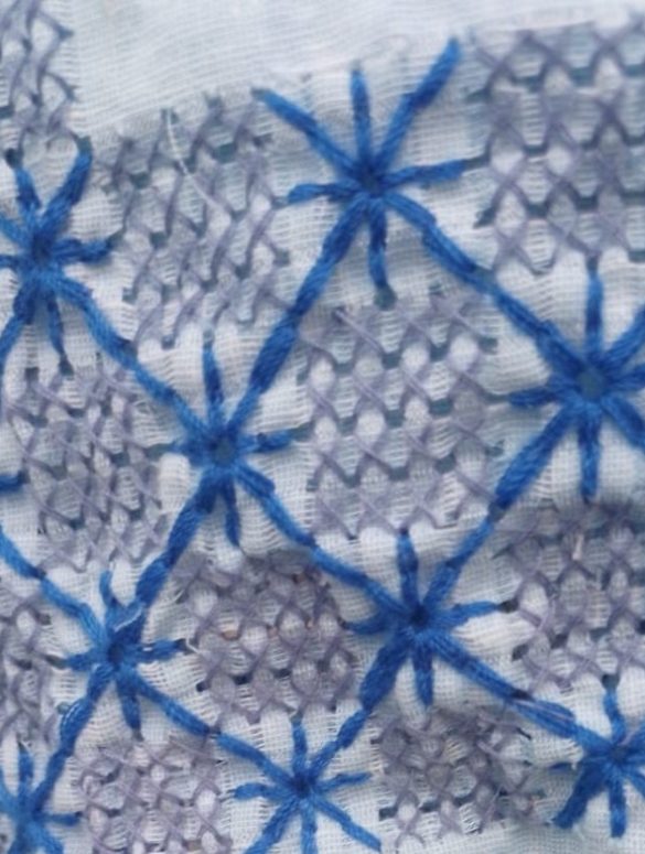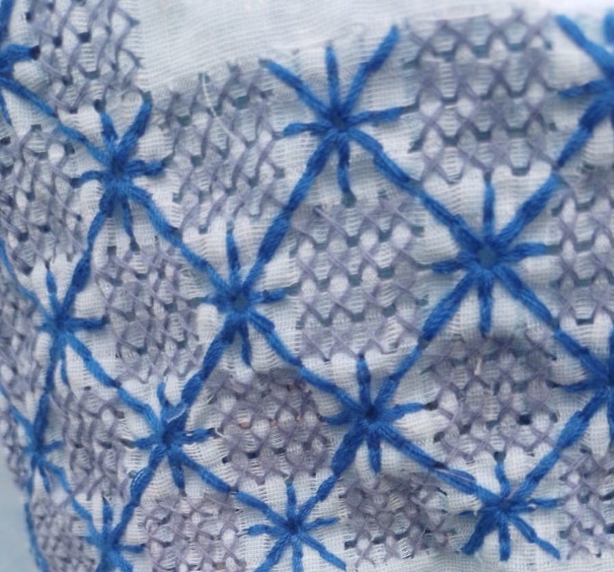 Vestido elaborada con técnica de deshilado, y punto de cruz con un acabado fino