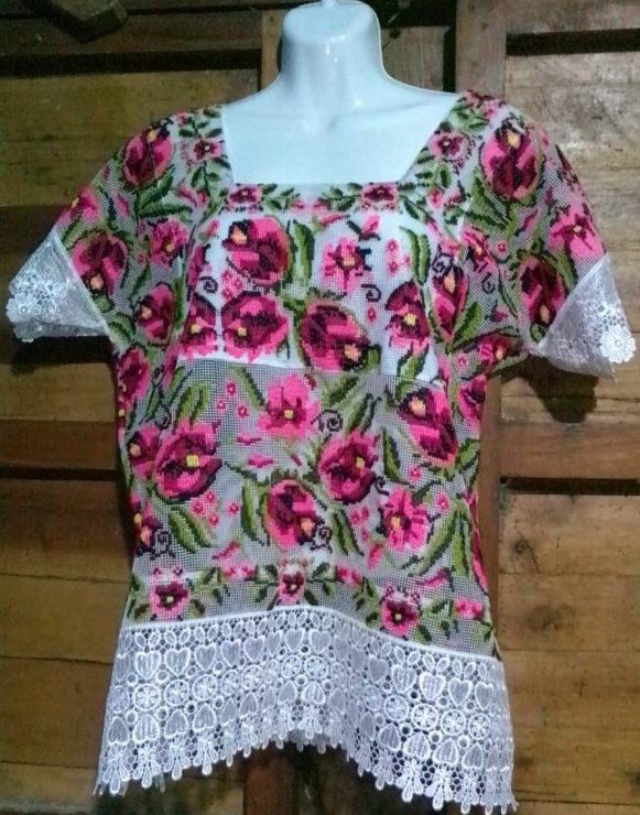 Blusa artesanal con diseño floral, realizada a mano con hilo de algodón acompañado con encaje en la parte inferior y de los brazos. Ofrece comodidad, frescura y con un diseño exclusivo. Al llevar está prenda, no solo llevas una prenda de alta calidad, sino una historia viva de tradición.