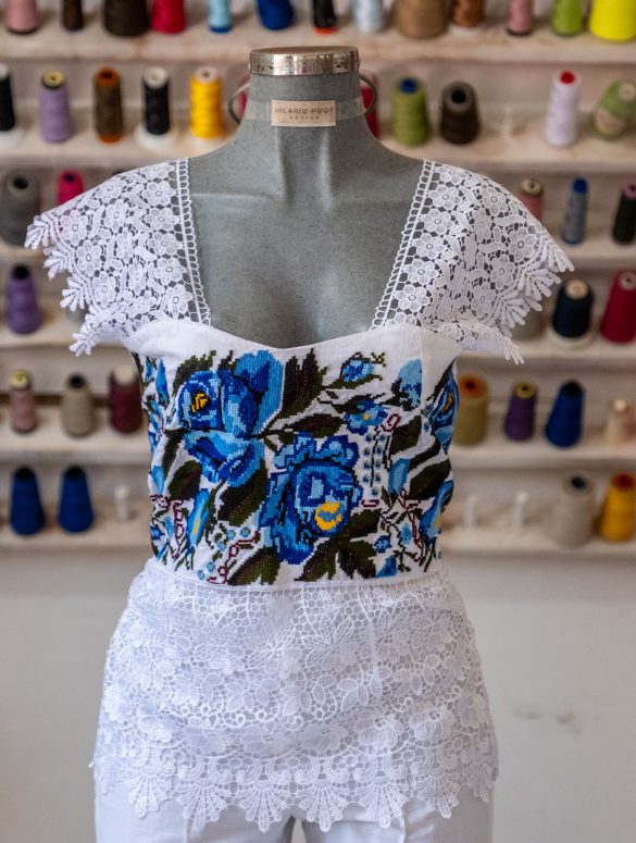 Blusa artesanal confeccionada con bordado a mano en punto de cruz fino. Elaborada con técnicas tradicionales que garantizan precisión, belleza y autenticidad cultural.