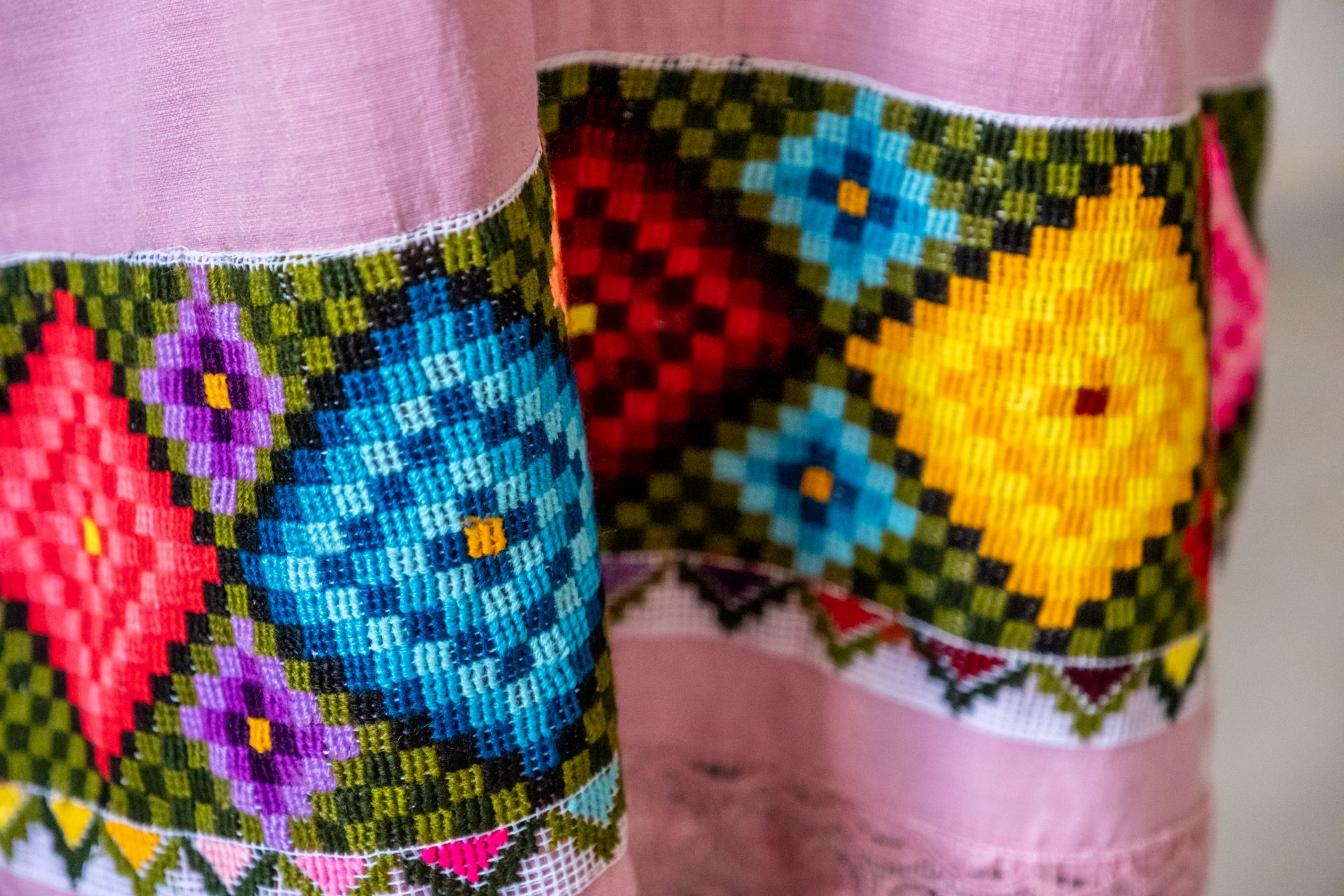 Elegancia con raíz artesanal. Juego de falda y blusa en lino, bordado a mano en punto de cruz fino, con encaje delicado y algodón suave. Ideal para quienes buscan estilo auténtico y calidad en cada detalle.