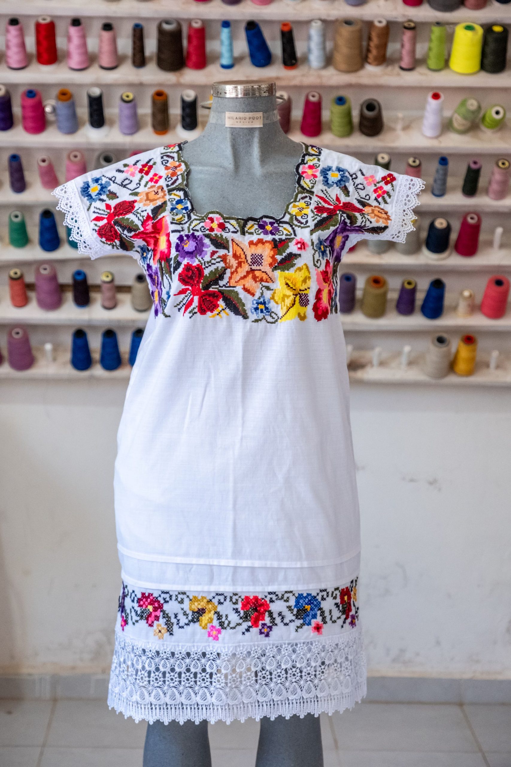 Tradición que se viste con estilo. Vestido tipo hipil en lino, bordado artesanal con estambre de algodón. Ideal para quienes buscan elegancia, frescura y un diseño único con raíz mexicana.